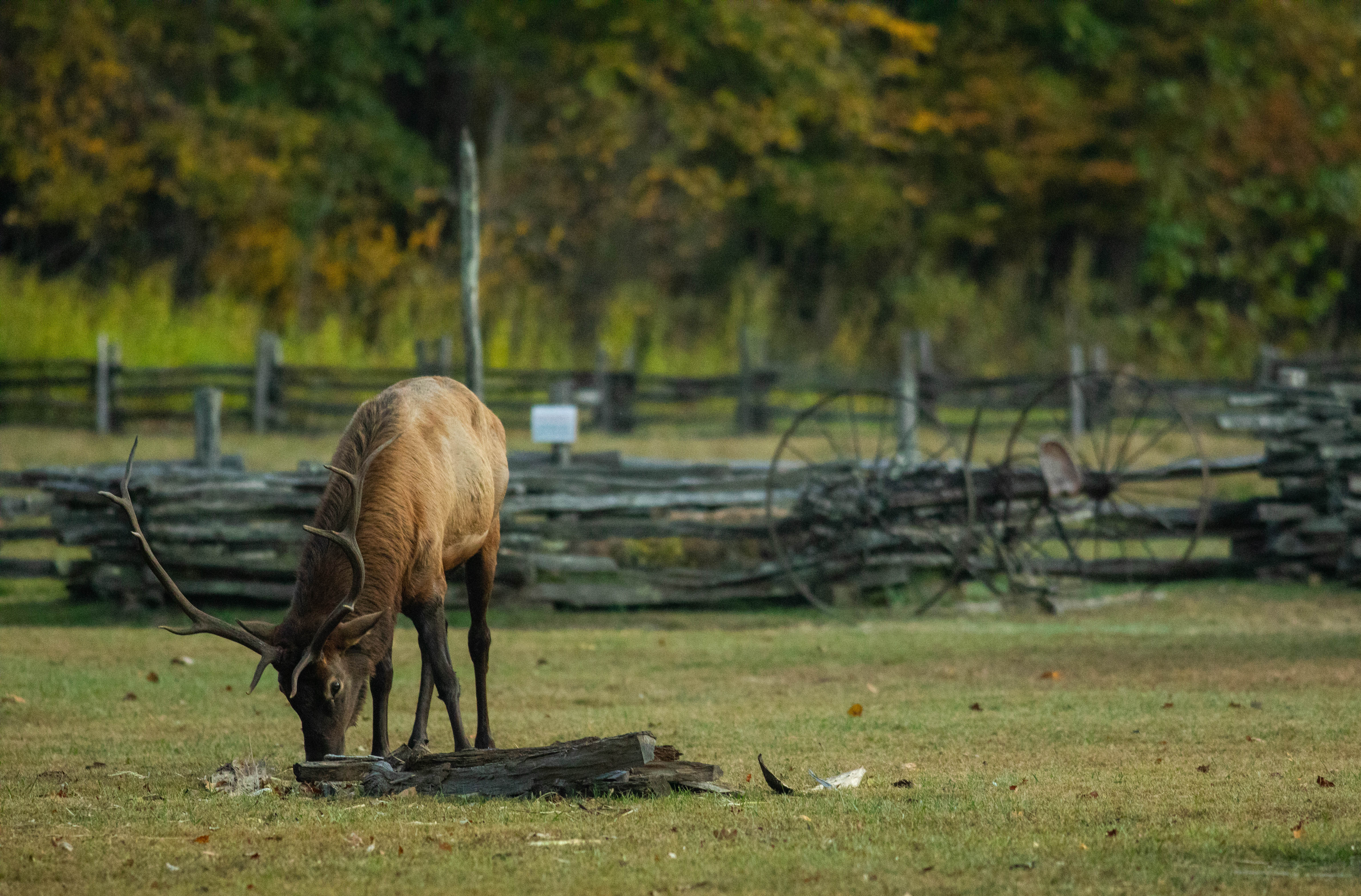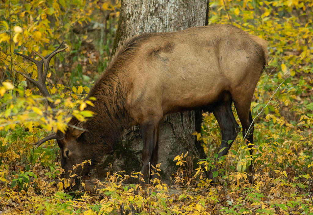 Like most renovation days this one was tiresome. I was elated when I finished laying to final coat of sticky stuff and could leave the house and remove my respirator. The smell, even from the front porch, was offensive and the fumes are harmful. I sat down to relax and looked at my watch. I realized that it was exactly the time that the heard of elk would come out of the woods and into the viewing field in the Great Smoky Mountains National Park. The elk don’t like to come out into full sunshine. They will wait until the sun passes behind the mountainside then emerge like aliens into the world that we have taken over.